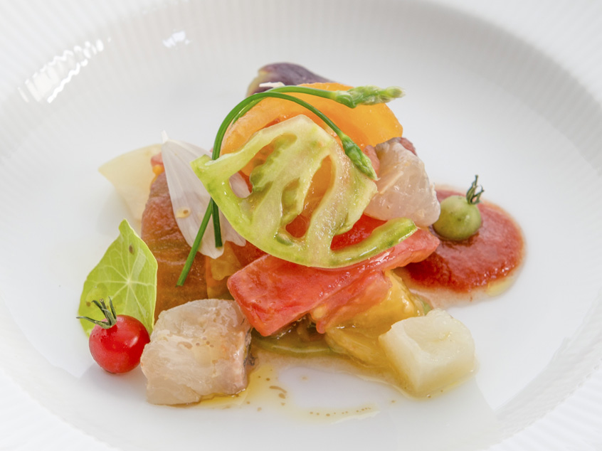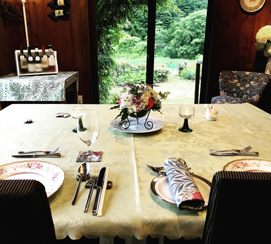 産地ならではの素晴らしい野菜、山菜、きのこ、米、小麦、豆、蜂蜜、豊な果物、木ノ実、オイル、川魚、牛、豚、羊、鶏、ジビエ、有精卵、絞りたての牛乳、チーズ、ハーブなど、地域の旬の食材で信州の季節を映し出すコース料理と、上質な長野県産のワインや地酒を始め厳選されたお飲み物で皆様をお迎え致します。